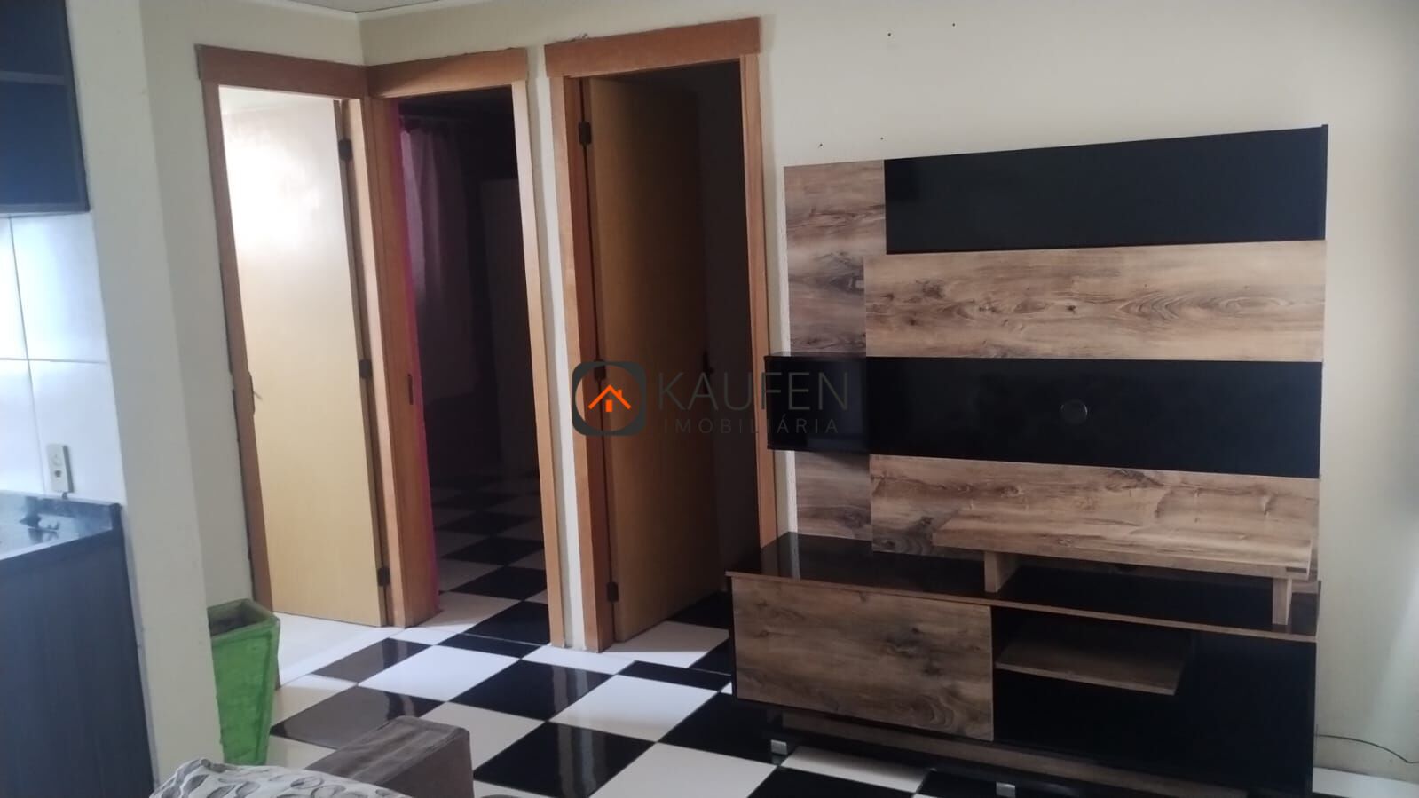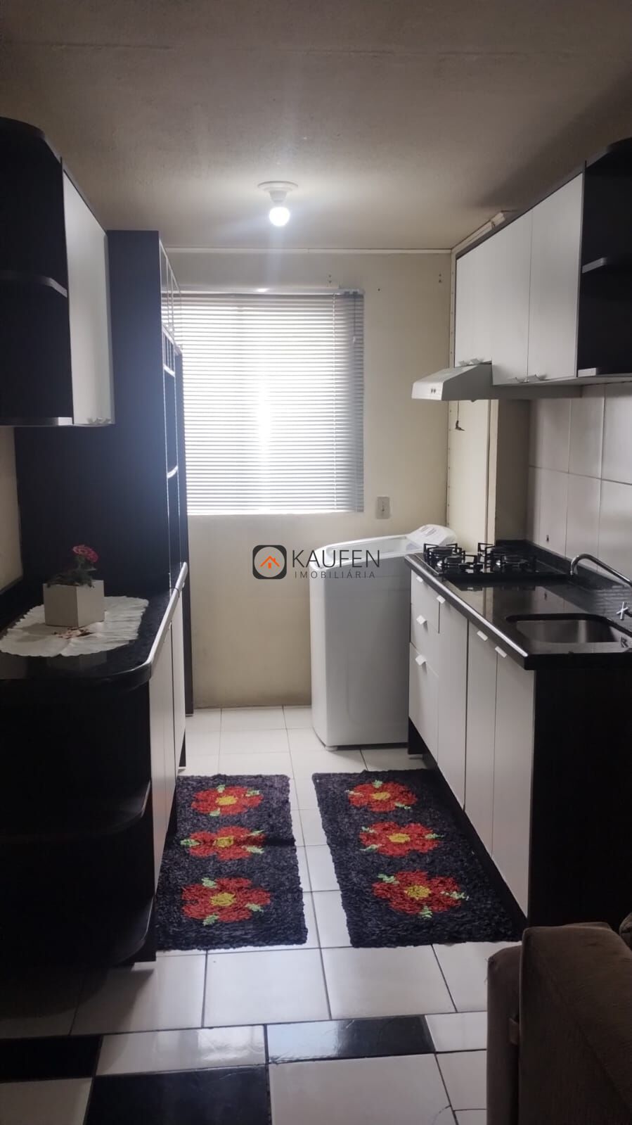 Algumas características do imóvel: 2 dormitórios, banheiro, sala de estar, cozinha e lavanderia integradas, garagem rotativa.