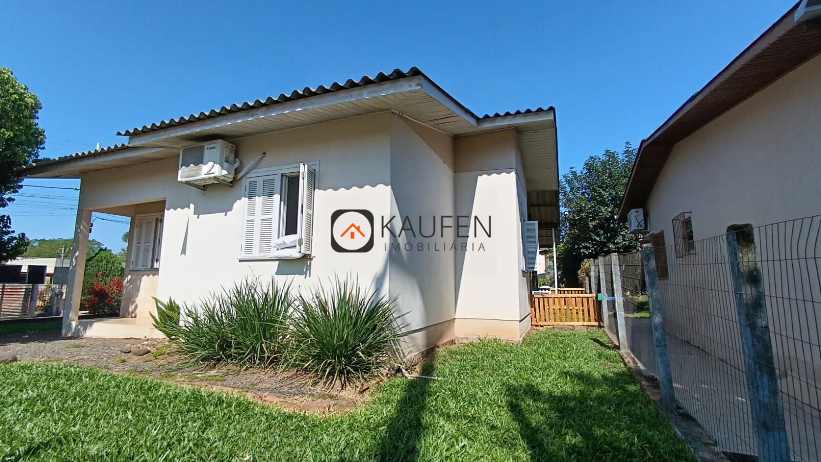 Imóvel composto por: 3 dormitórios, 1 banheiro, sala e cozinha integradas, lavanderia, vaga para 1 carro coberto, espaço para mais carros no pátio, esquadrias de madeira, piso cerâmica, amplo pátio fechado com muros, grades e portão eletrônico. Fica os móveis sob medida da cozinha.