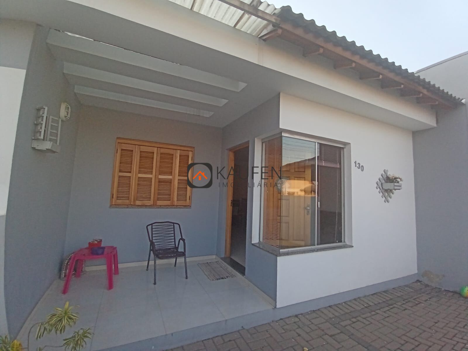 O imóvel é composto por: 2 dormitórios, banheiro, sala de estar e sala jantar integradas, cozinha, área de serviços, churrasqueira, garagem com vaga 1 carro, pátio nos fundos e frente.