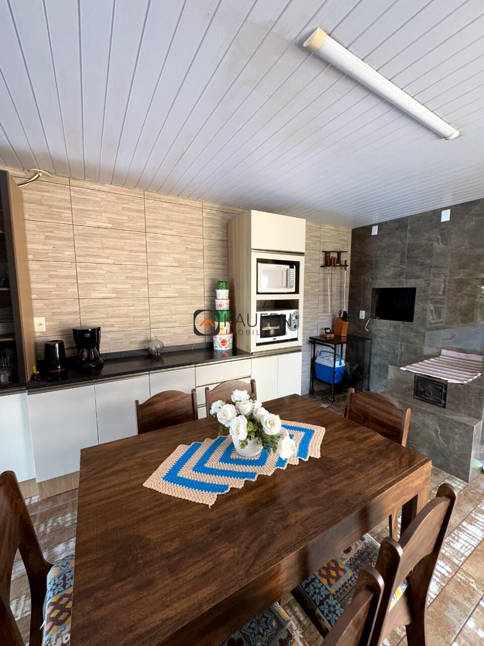 O imóvel conta com: 2 dormitórios, banheiro social, sala de estar, cozinha com fogão campeiro e churrasqueira, área de serviços externa, garagem coberta integrada para 1 carro, quiosque com churrasqueira e banheiro, piscina, placa solar para maior economia e poço artesiano.
