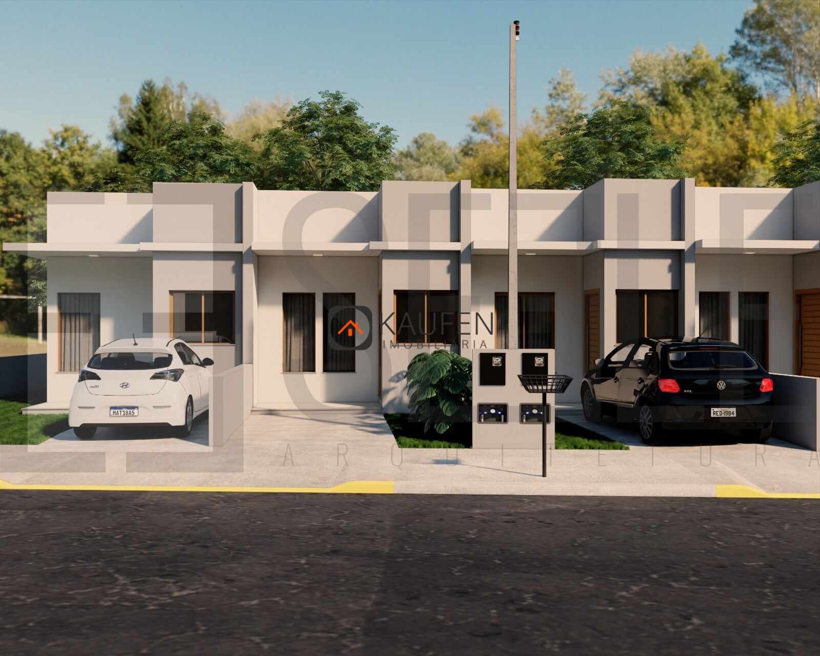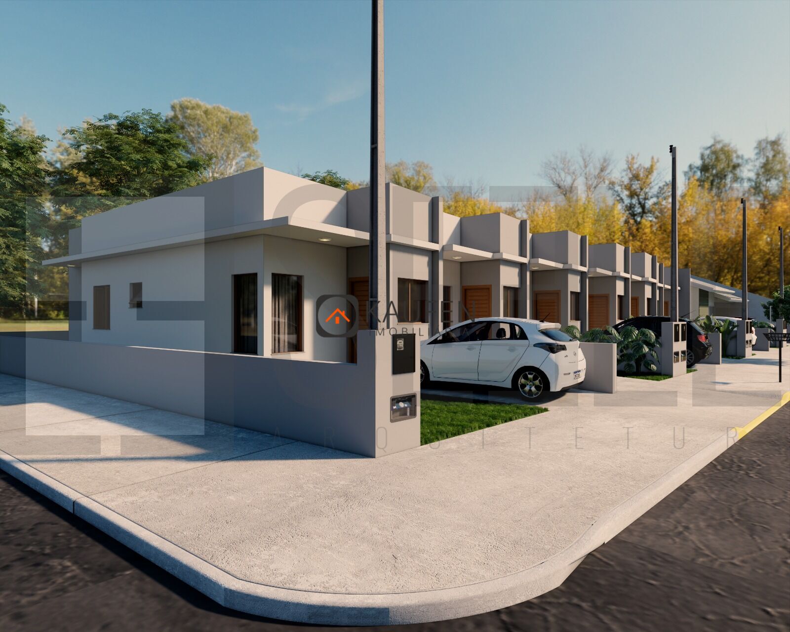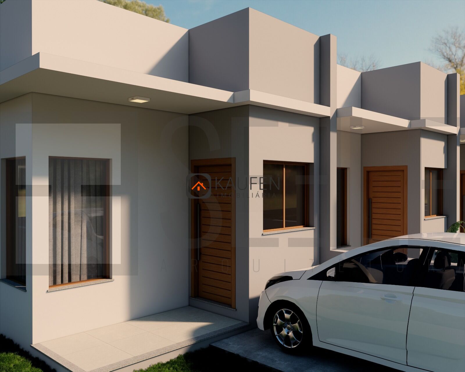 Os imóveis contam com: 2 dormitórios, banheiro social, sala de estar e cozinha integradas, lavanderia individual, espaço para 1 carro, laje e platibanda com design contemporâneo , teto alto com forro em gesso – melhor conforto térmico, aberturas em madeira de eucalipto tratado, porcelanato em todos os ambientes, massa corrida nas paredes, áreas molhadas até o teto, banheiro com ventilação natural.