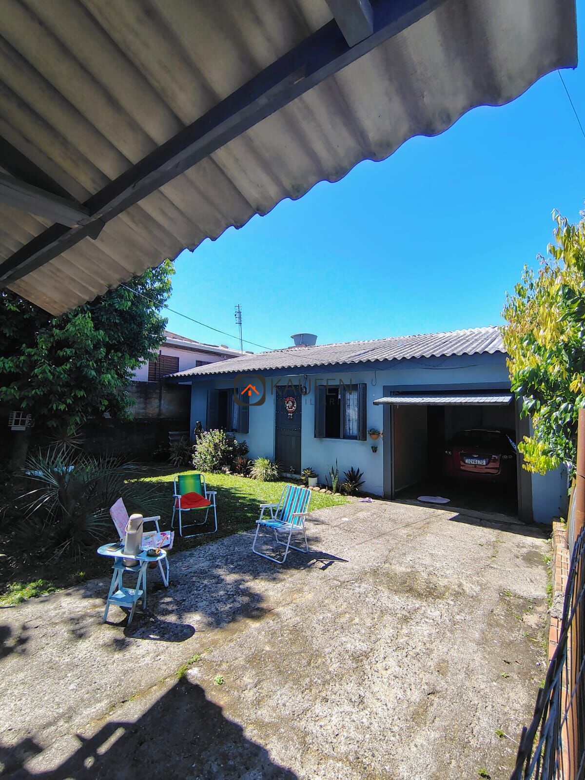 Imóvel composto por, 2 dormitórios, 1 banheiro, sala de estar, cozinha com churrasqueira, lavanderia, garagem fechada para 1 carro, espaço para mais carros no pátio, amplo pátio em frente, pátio fechado com muros, cerca e portão.