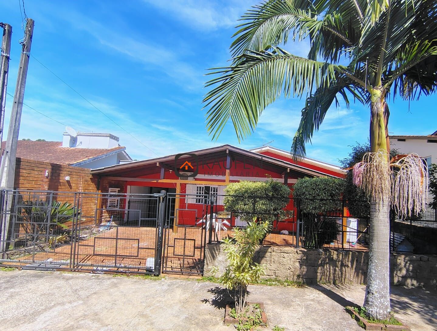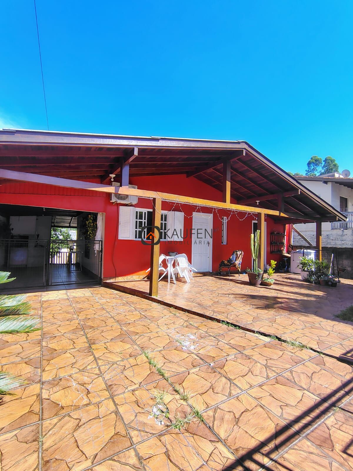 - Casa 1: 2 dormitórios, 2 banheiros, sala de estar e jantar integradas com a cozinha, lavanderia, garagem coberta com churrasqueira, banheiro e espaço para 1 carro, espaço para mais carros no pátio, pátio amplo com árvores frutíferas e todo cercado, nos fundos piscina e quiosque.