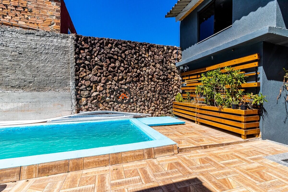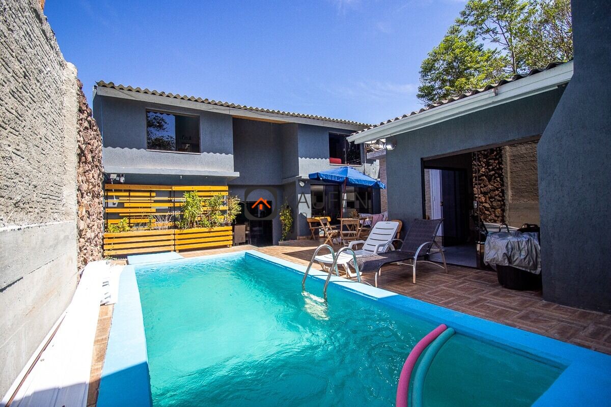 Lindo sobrado! Possui 3 dormitórios ( sendo uma suíte com closet), 2 banheiros,1 lavabo, sala, cozinha, lavanderia, churrasqueira, lareira, piscina, toda cercada. Ficam os móveis sob medida da cozinha, closet e banheiro. Aceita permuta por imóvel no litoral.